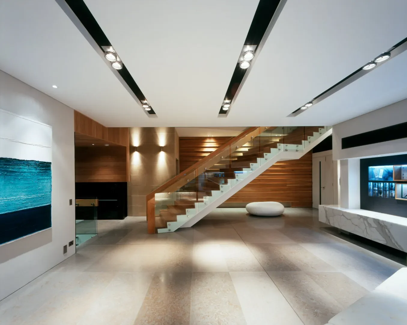 This new residence perched high on Ascot hill commands a view across the Brisbane skyline. The house, built on the side of Bartley’s lookout follows the steep contours of the land cascading over 4 levels, maximising solar access, breezes and views, in one of the most private settings that an inner-city site affords. The home is expansive and was imagined to create an expansive living level at the highest elevation possible, both sides of the living area open to the hilltop site and whilst the view facing south is the hero, the living, kitchen and dining pavilion opens to the north via a private grassed courtyard that hugs the reserve that flanks the site on three sides.