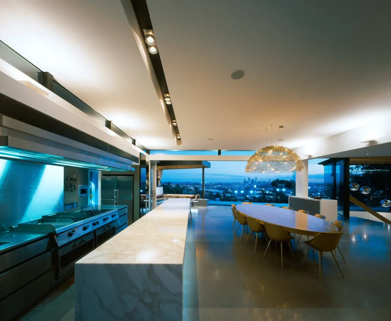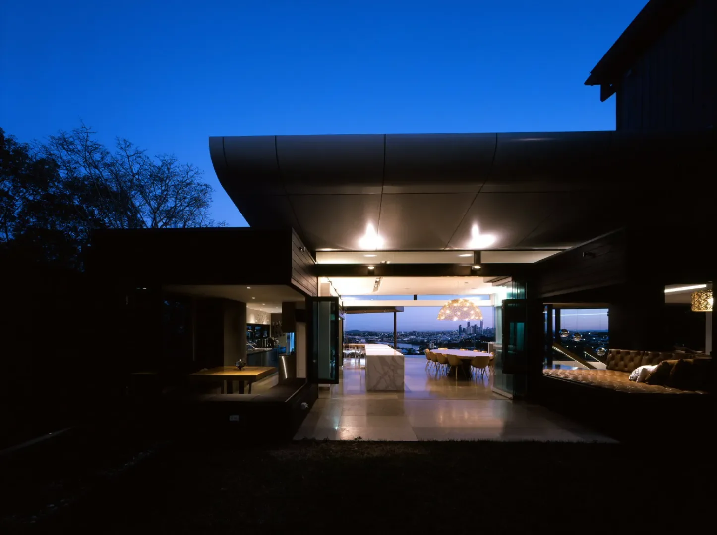 A home that followed the topography of Bartleys Hill and embraced the open space of the reserve as though the site extended into the bushland. The infinity edged pool, open living area with the skyline of the CBD behind forms the backdrop for the large entertaining area, whilst creating intimate family experiences, such as the caravan inspired breakfast nook and the intimate day bed.