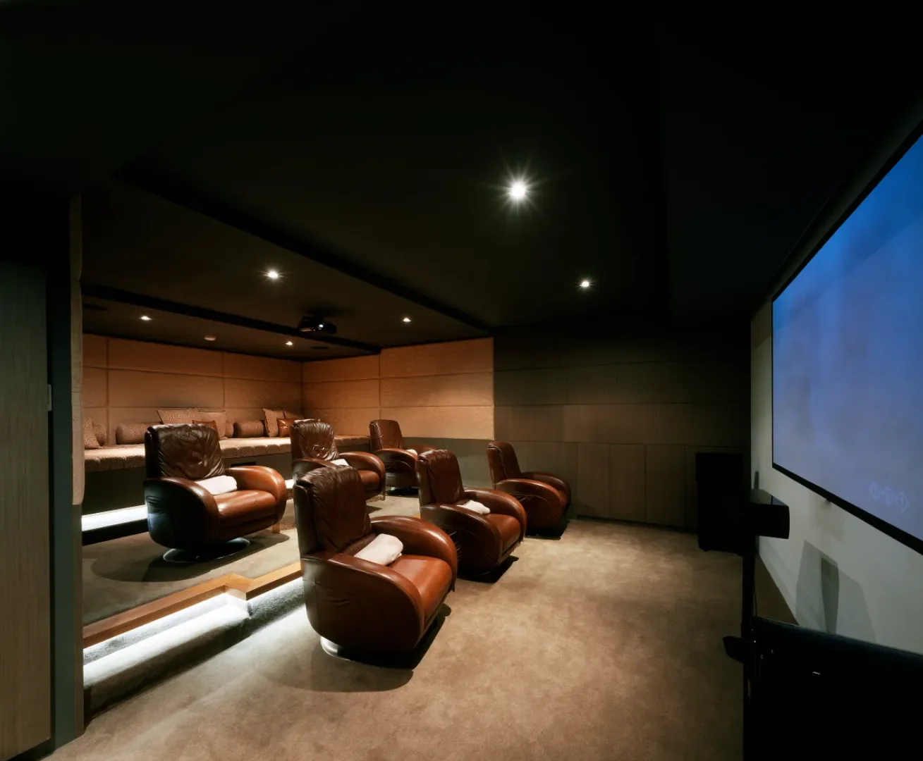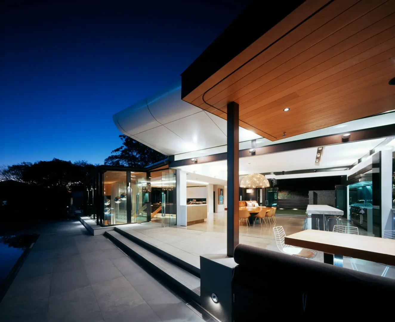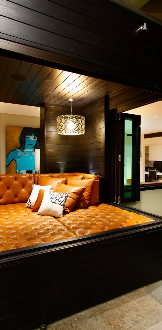 small daybed nook • roof deck curtained dining area • solid timber cladd internal walls • intimate kitchen dining • rooftop pool • home theatre • games room • home gym including steam room •
