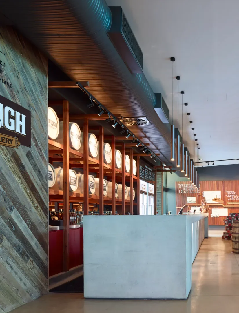 tasting bar • renovated distillery • offices • functions centre • visitor centre • history wall • barrels reused