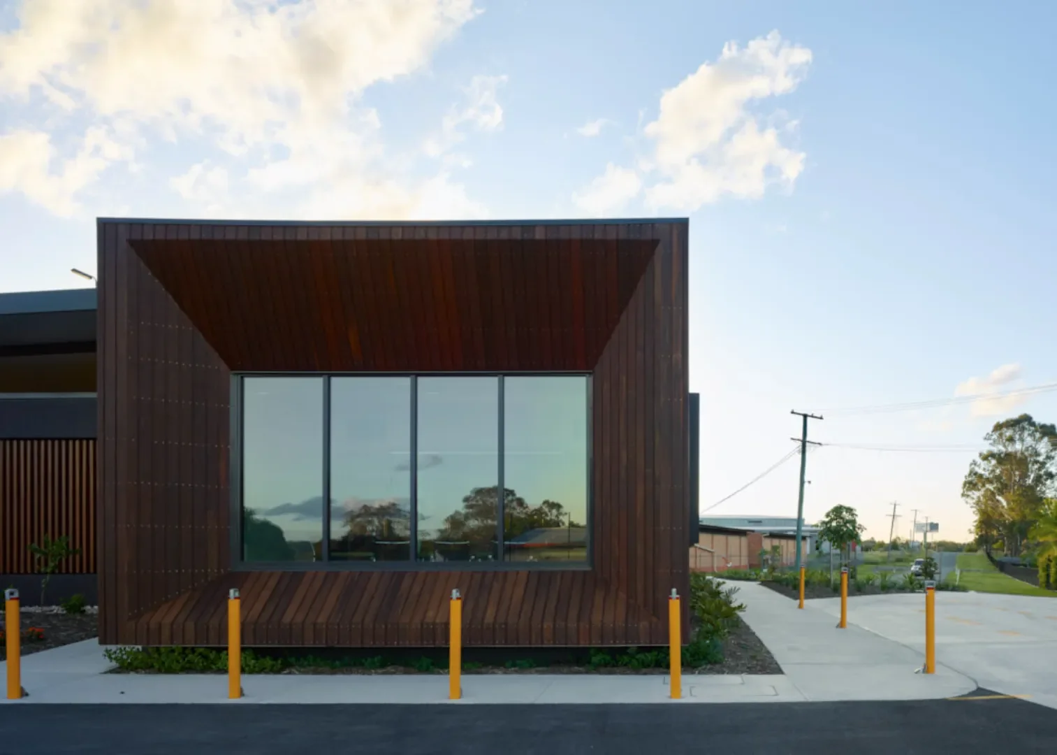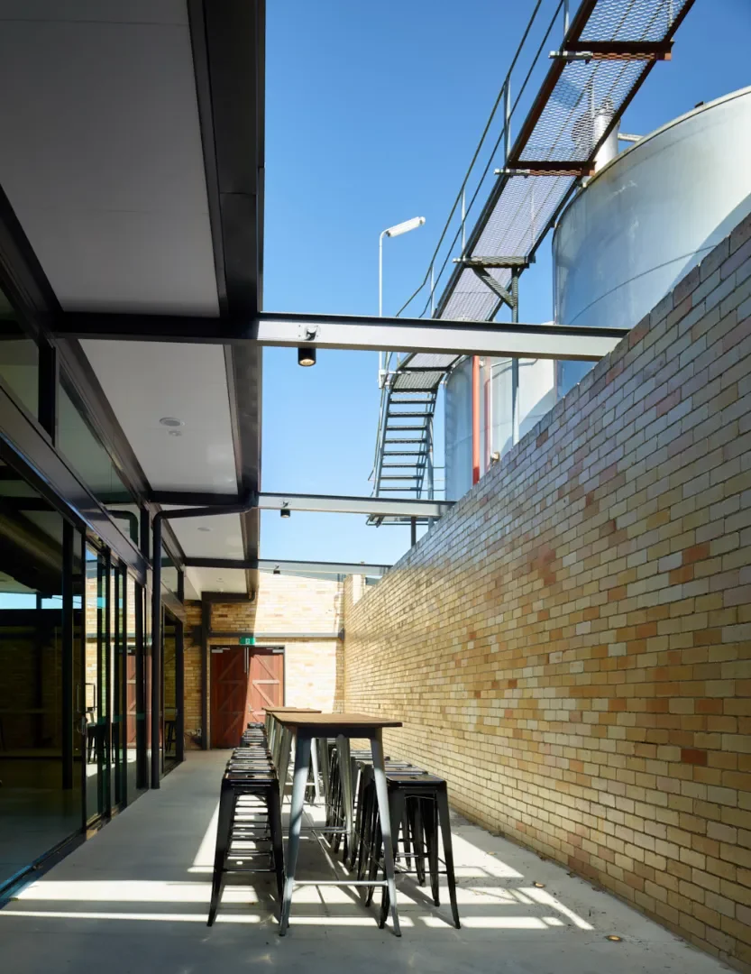 Respecting the history of the business and creating a timeline and museum in the front of house area immerses visitors with the distilling process, A direct line of site from the visitor’s centre to the heritage listed distillery is the initiating point for tours to the distillery. The shape of the building itself mimics the round form of the rum barrel, and the brick walls of an adapted vat store provide part of the enclosure of the new facility. The barrelling process again is represented by the timber lined interiors echoing the barrel shape externally.