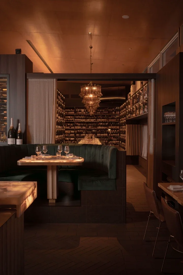 Parti: The colours in the onyx, are the colours in the fit out and and the champagne effects in the natural stone mimic the ‘bubbles’ being served.